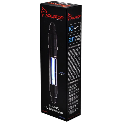Aquatop's specially designed In-Line Ultraviolet Sterilizer maximizes UV exposure in a compact, easy-to-install unit. Water traveling through the IL-UV Series is exposed to UV-C light, known as germicidal grade UV Light. The result is clean, crystal clear aquarium water.