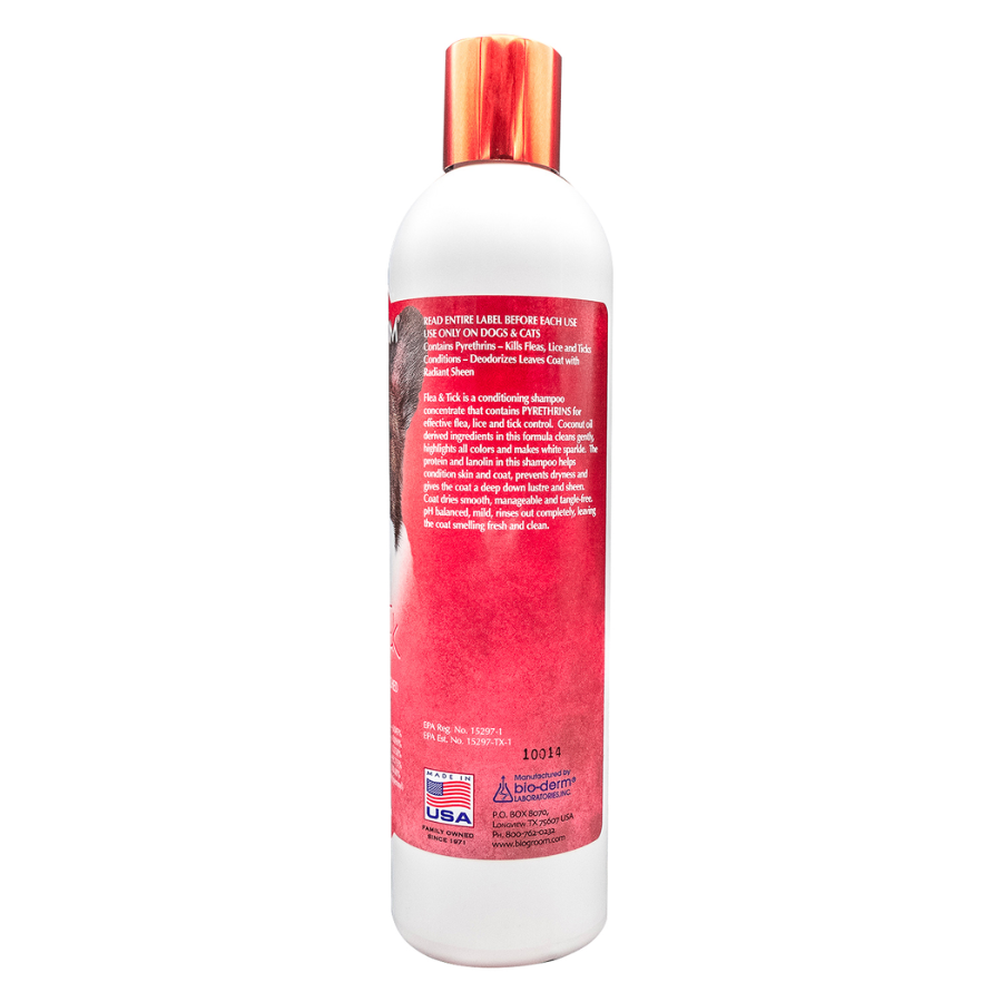 Bio-Groom Flea & Tick Protein-Lanolin Enriched Pet Shampoo is a conditioning shampoo concentrate that contains Pyrethrins for effective flea, lice, and tick control. The Pyrethrin in this flea and tick shampoo for dogs is considered to have the best safety margin of all topical products. It is derived from the daisy-like cousin of the chrysanthemum flower, harvested in Kenya, and 100% natural and biodegradable.