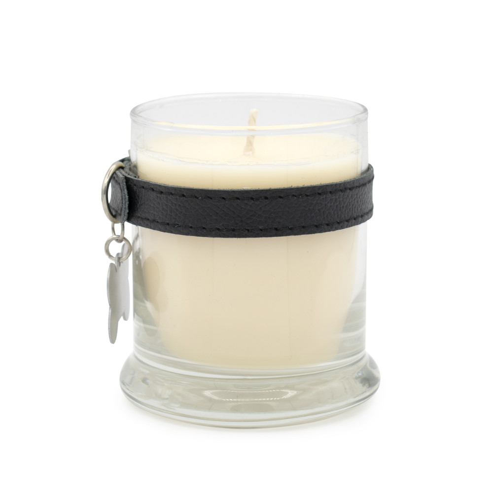 Premium Candles are made with a Soy Wax Blend in Odor-Neutralizing Fragrances. It features a black collar with a dog tag celebrating a dog’s life. The tag says “Dogs are not our whole life, but they make our lives whole.”