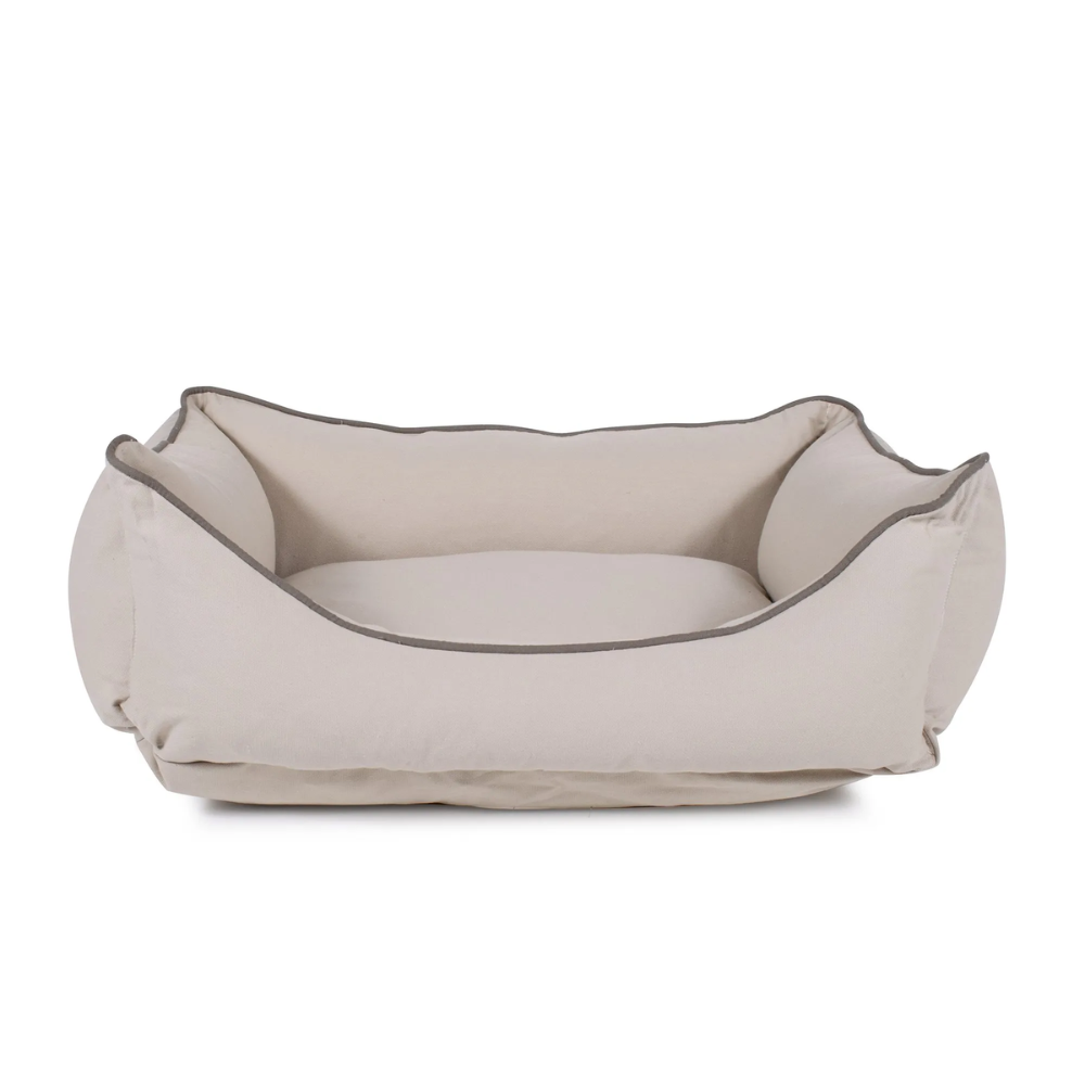 The low-profile design of this bed makes it easy for your pet to step in and out. Once settled, your pet is wrapped in natural cotton and comfort. The built-in bolster pillows provide comfort, support, and security for the pet that likes to curl up to sleep. The soft cotton fabric combines luxury with long wear & easy care. The zippered cover is easily removed for machine washing.