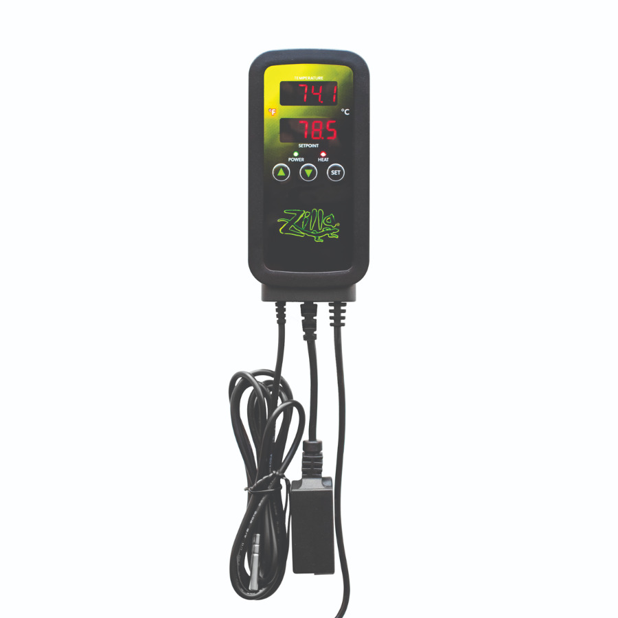 The Zilla® Digital Temperature Controller is a necessary part of your pet’s husbandry. With a clear digital interface, this unit controls the temperature of your enclosure by controlling the heating element. Perfect for use with Heat Pads, Ceramic Heat Emitters, Heat Tape, and other heating elements. Using the Digital Temperature Controller helps to reduce the risk of burns or overheating your pet reptile.