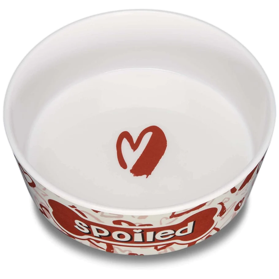 This dish offers a unique design with playful red and pink hearts, a red cartoon bone with the word “spoiled” on the exterior, and a bright red cartoon heart in the center of the bowl. In addition to being a chic addition to any home, thsi strong Dolce Moderno dog bowl can withstand daily wear and tear for long-lasting use. You and your dog will love the many benefits a Dolce Moderno Spoiled Bowl for Dogs provides!