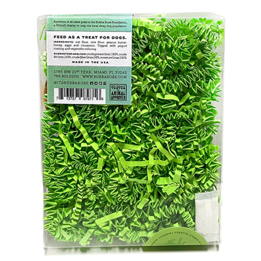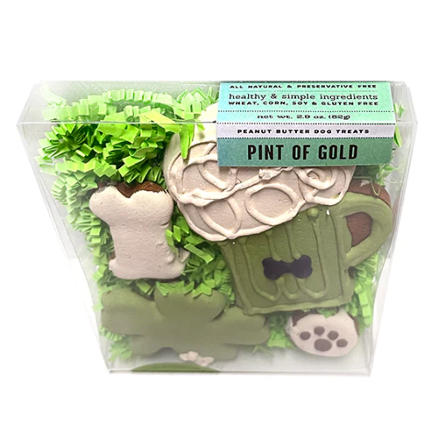 This festive green box has some of the best selling St. Patrick's Day treats by Bubba Rose Biscuit Company. Made from their dog favorite peanut butter treat recipe, it's a sure winner. Colors can be assorted.