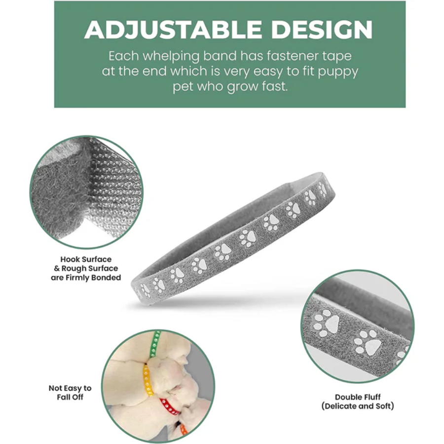 - Adjustable design - Each whelping band has fastener tape at the end which is very easy to fit puppy pet who grow fast. It is also ideal for some other small animals.