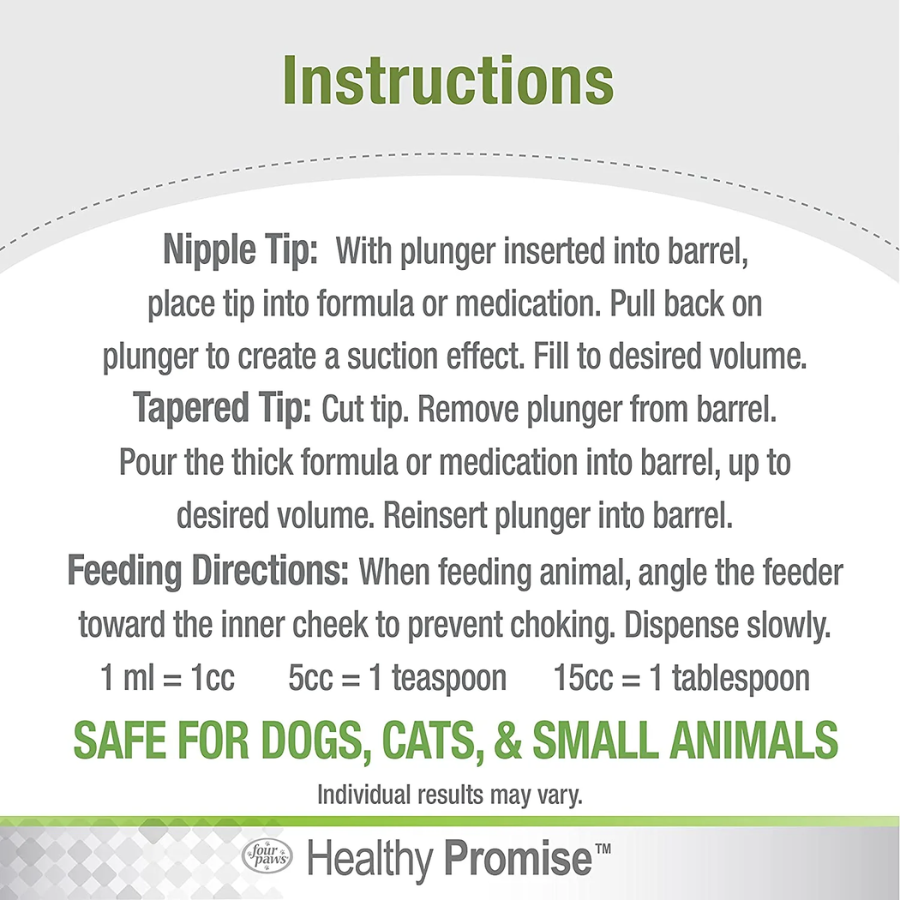 Recommended by veterinarians, the Healthy Promise Easy Feeder is a safe and effective dispenser for orally administering liquid formulas and medications. This pet feeding syringe is designed with two different tips: a nipple tip that's ideal for thinner liquids and a tapered tip for thicker liquids or pastes. It features measurement markings to help you provide precise, accurate dosage. Plus, our feeding syringe for dogs, cats, and small animals is BPA free and dishwasher safe. Add Healthy Promise pet healing & care products to your furry friend’s routine!