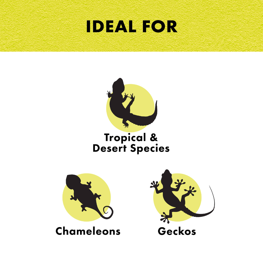 - Emits full-spectrum light and UVA rays needed for a healthy reptile environment