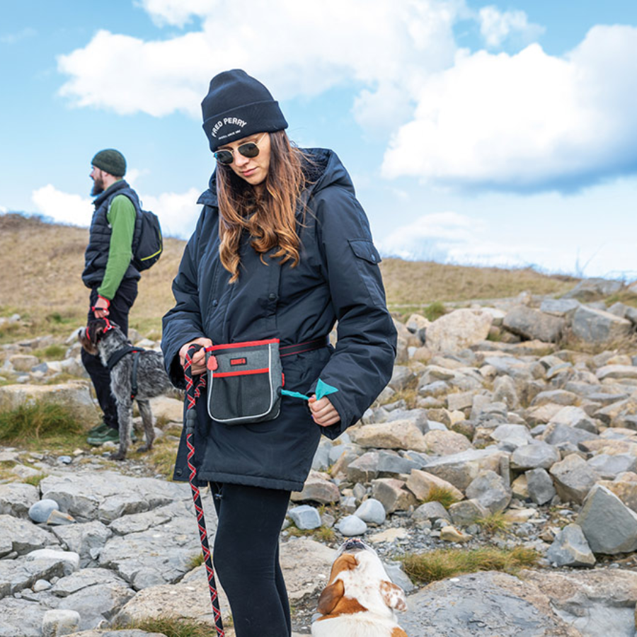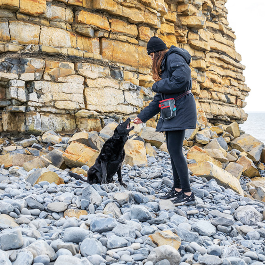 - Belt clip, carabiner and outer pocket for pick-up bags