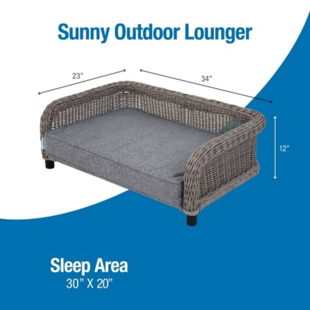 When temperatures start to rise, few things beat lounging on the porch and taking in the cool breeze. Give your pet their own comfortable place to relax outdoors with a La-Z-Boy® Sunny Outdoor Lounger. Designed specifically for outdoor use, the Sunny Lounger comes with a 3.5" thick mattress that is covered in a durable, peppered fabric that's UV and fade-resistant, water-resistant, and mold and mildew resistant. The fully woven bedding platform is made with a rust-proof aluminum frame and comes fully assembled and ready to use! The elevated design helps air flow freely, allowing your dog to kick his paws up and live life comfortably.