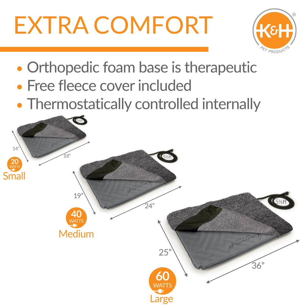 - Outdoor heated dog bed with soft orthopedic foam base and includes free soft washable fleece cover