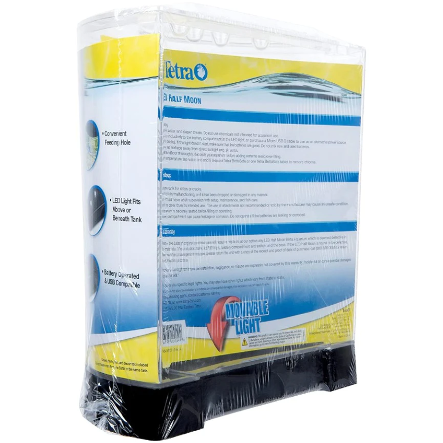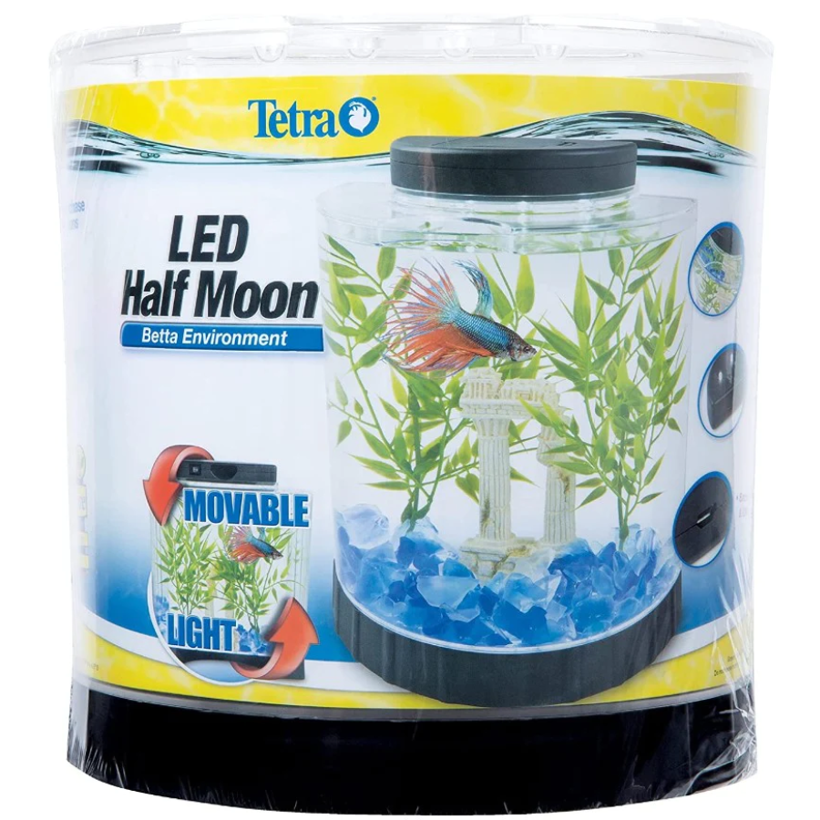 The Tetra LED Half Moon Betta Kit is a beautiful betta environment in a cool half-moon shape that will be a great addition to any small space at home or at the office.
