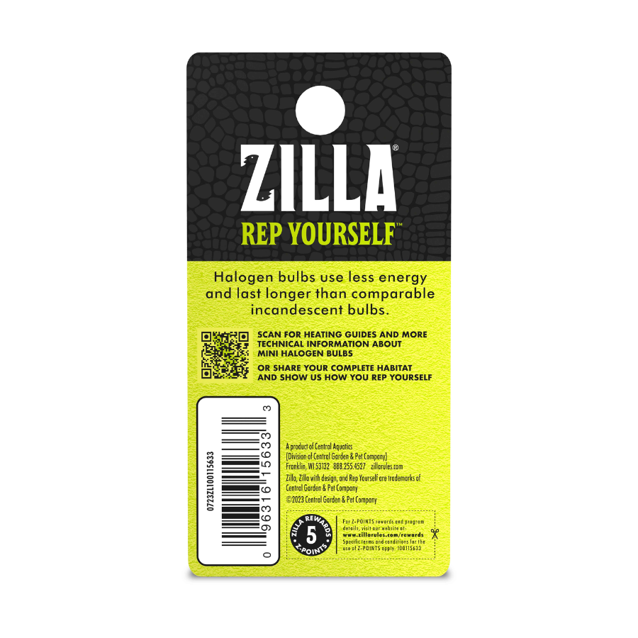 - ENERGY EFFICIENT AND STRONG OUTPUT. The Zilla Mini Halogen Bulb offers more efficiency compared to traditional incandescent bulbs.