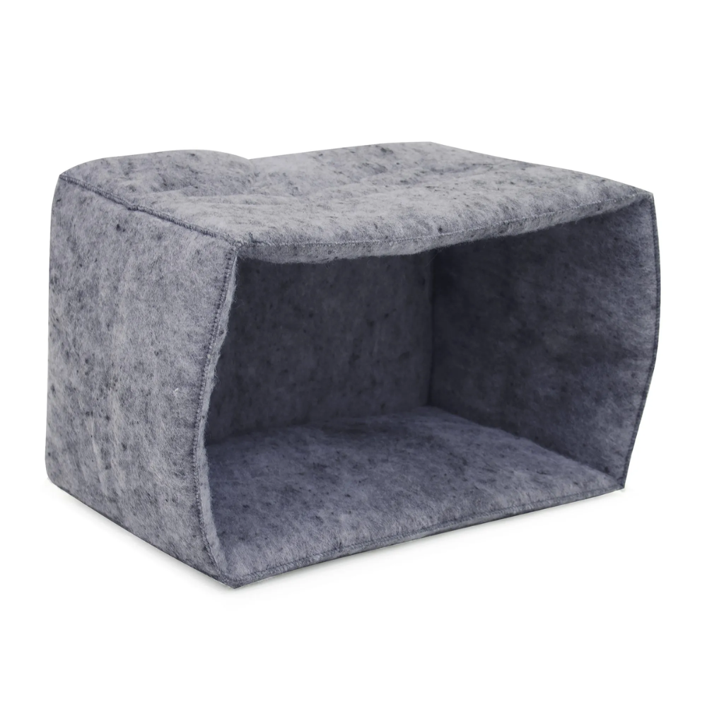 Two beds in one! Folded down, you’ve created a bed for your pet to snuggle. Unfold to create a hide-away for your cat. This ultra soft, polyester pad works great on sofas, chairs, or any where else your cat likes to sleep. The special fibers work as an insulator to absorb and hold heat while their electrostatic charge traps hair dirt and dust. Machine wash and hang dry.