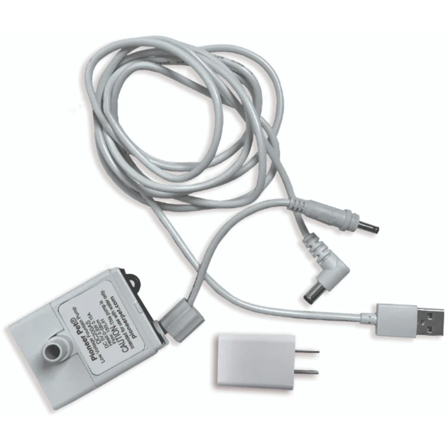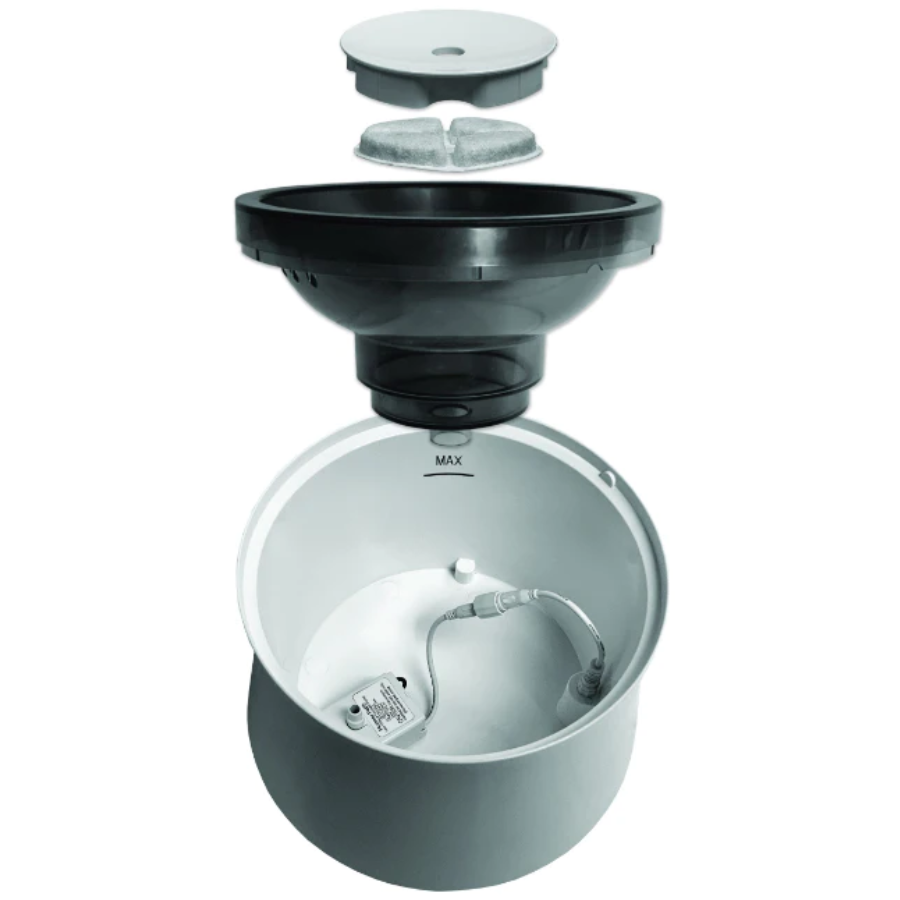 Pioneer Pet White Vortex Drinking Fountain creates a vortex that pulls down any hair or debris from the bowl. It also adds oxygen into the water. You will be amazed how clean your pets drinking water is!