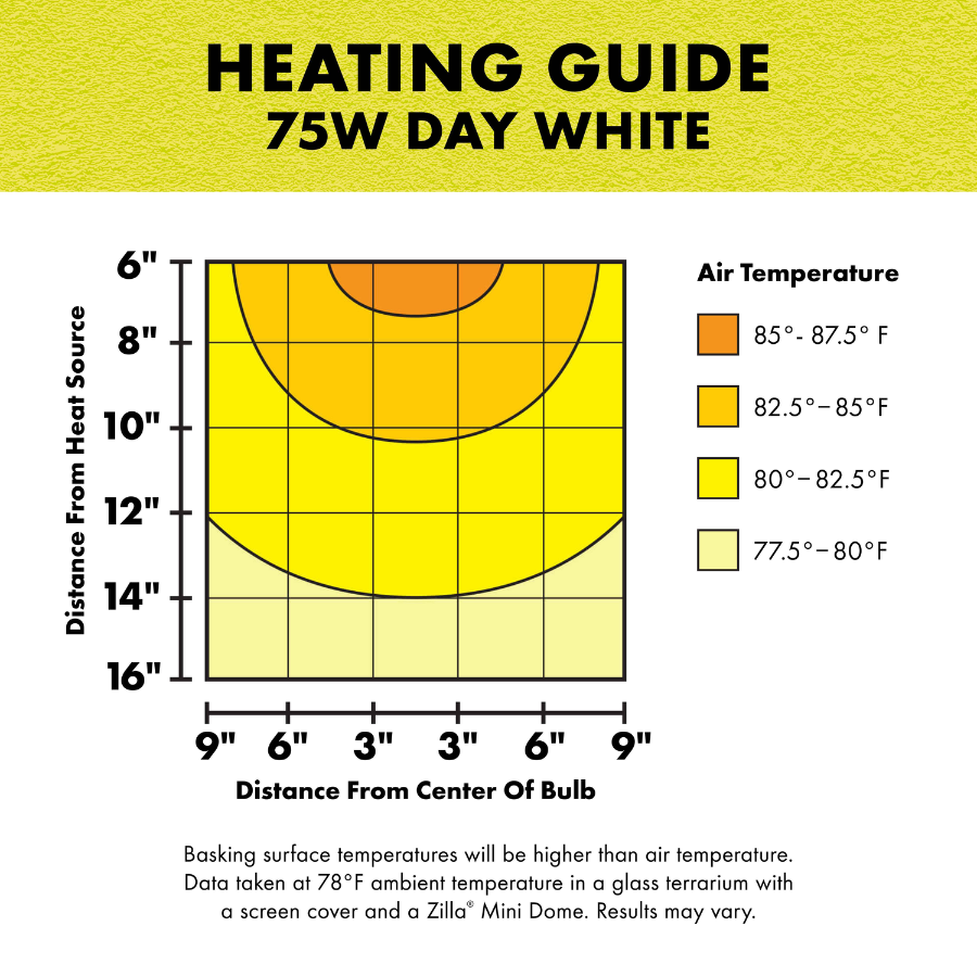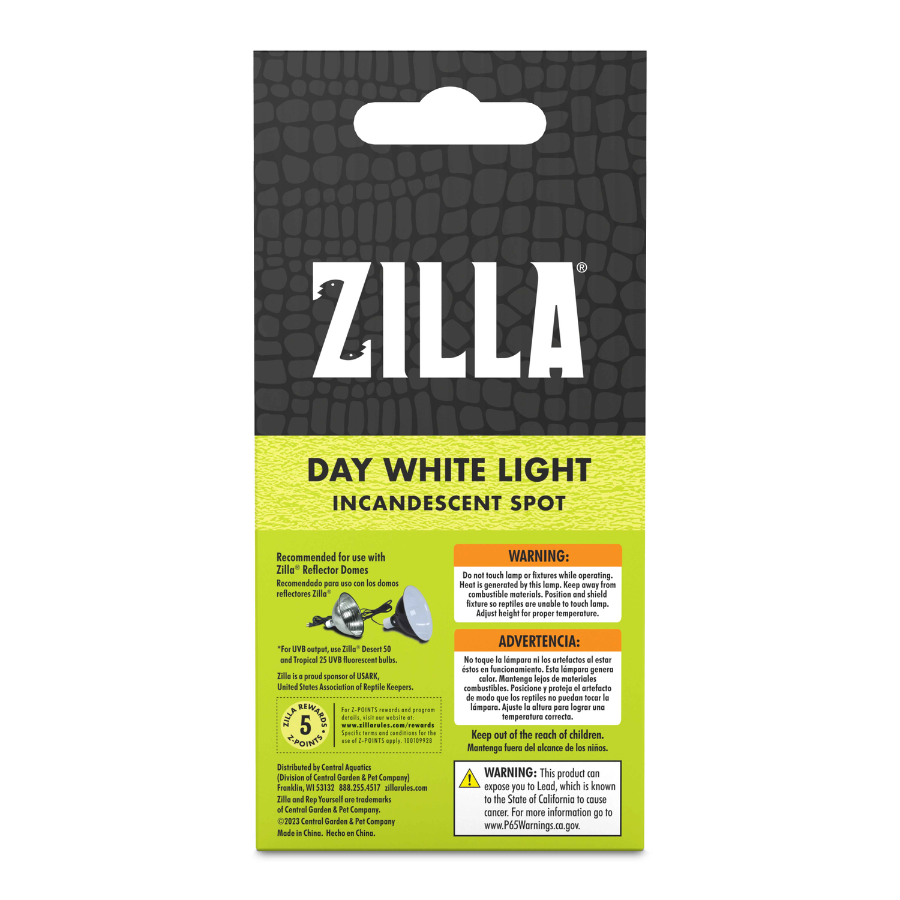 Zilla® Incandescent Spots pinpoint light and heat in any area for a more dramatic visual effect. Spot heat lamps create focused warm zones, allowing reptiles to move away from the heat source as their body temperature changes. Heavy-duty filaments yield more hours of service from every bulb.