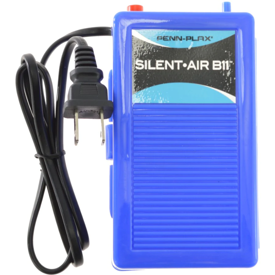 A must for any aquarium, the Silent Air Pump assures continuous aeration of your tank giving you peace of mind and keeping your fish safe. Whether you have a tripped breaker, a blown fuse or a complete power outage, the Silent Air B11 Battery Powered Air Pump will give you hours of needed air when you need it most. Periodically test your Silent Air B11 Pump by unplugging the AC cord with the unit ON which should activate your pump. Batteries should be tested and changed as needed.