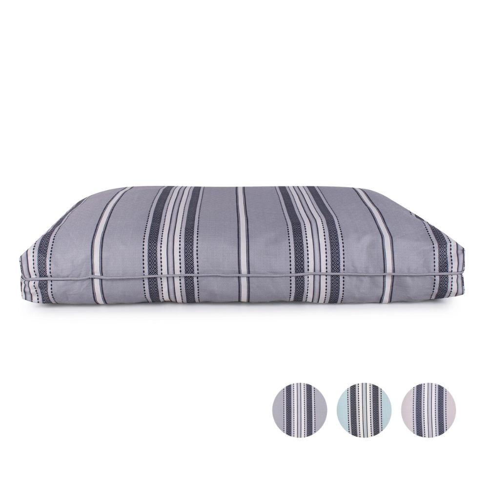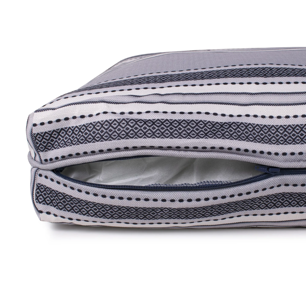 Inspired by the classic design of Turkish Towels, this bed will not only be a comfort for your pet, but a great accent in your home! Indoor or out, the all-weather, UV protected fabric cover is stain, fade & mildew resistant to handle all your outdoor & indoor activities. These beds are great for older incontinent pets too. Great for decks, patio’s, crates or dog houses. Hose down to clean the water runs right through or simply throw the removable cover in the washing machine. Since it is so lightweight and easy to clean, this is a great bed for the dog on the go. Throw in the car and take for your next adventure!
