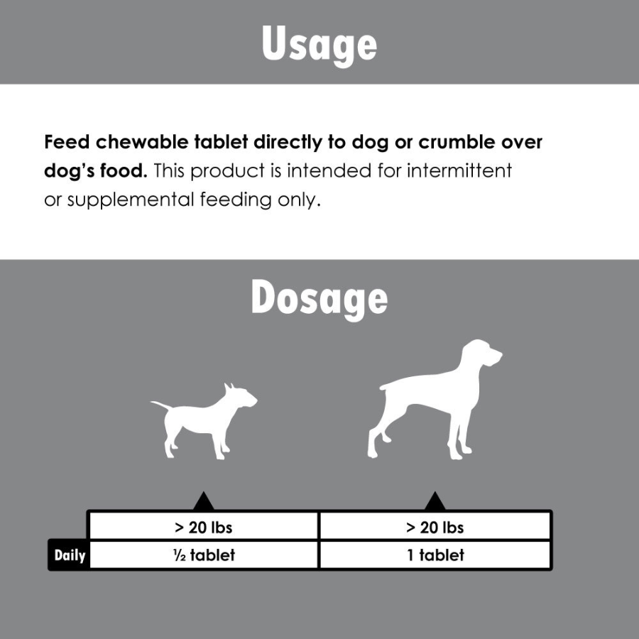 Feed chewable tablet directly to dog or crumble over dog's food. This product is intended for intermittent or supplemental feeding only.