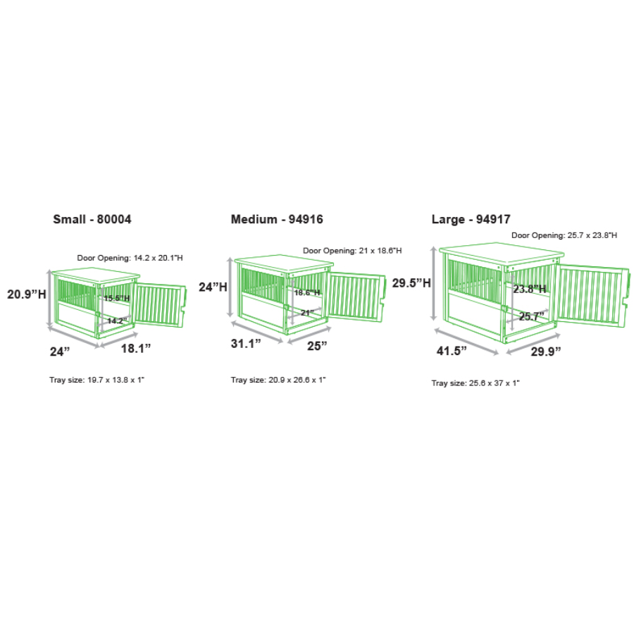 It saves space by doubling as a stylish end table as well as a pet containment and leisure space. Multiple vents provide a 360° view and a well-ventilated environment for your pet. Includes a removable sliding tray for easy cleaning. The door can stay fully open for easy access to your pet and includes a side stopper to keep the door in place. You and your pet will both feel at home and in style with the Wooden End Table Crate.