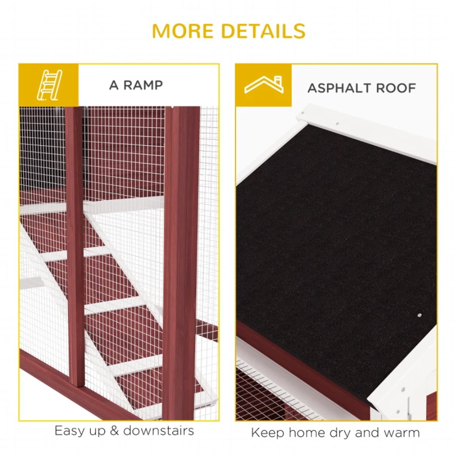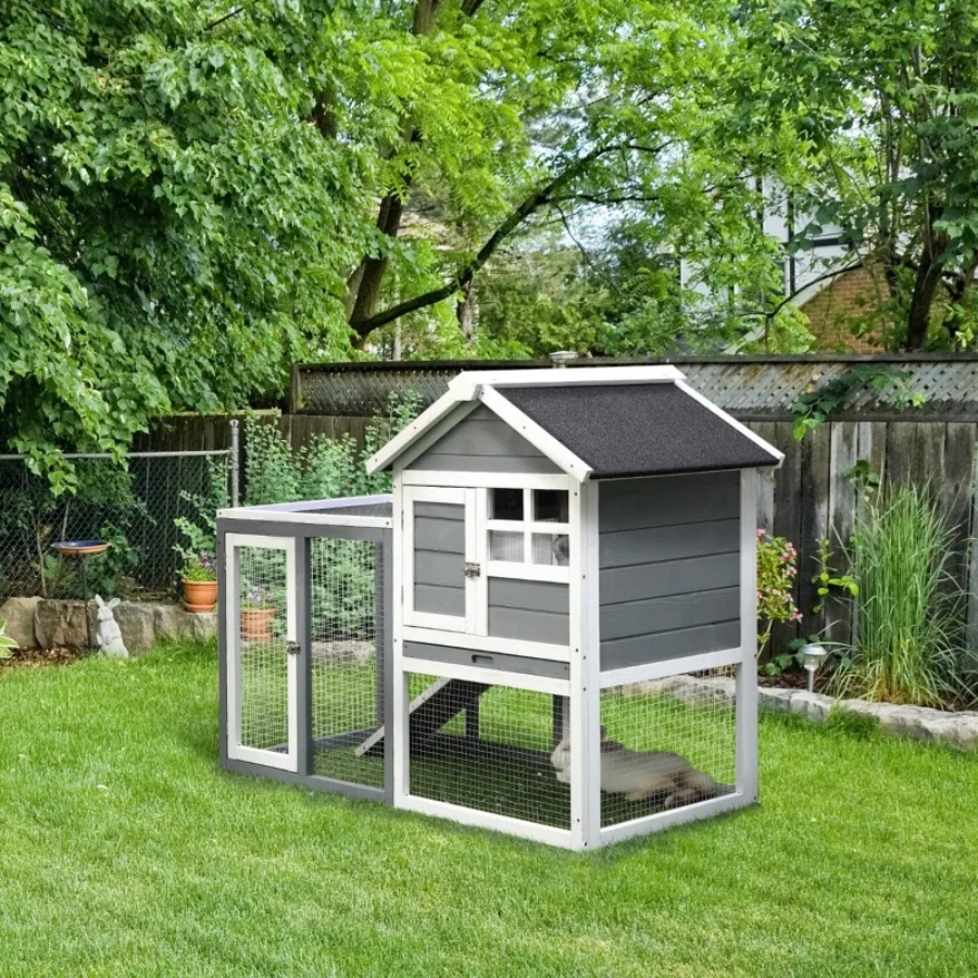 - Durable Material: Made of solid fir wood and a composite asphalt roof, this bunny hutch will keep your furry friends dry for years to come