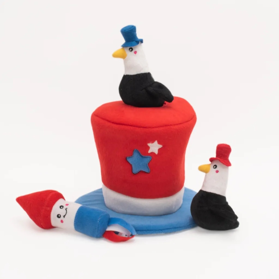 Include your patriotic pup in the fun 4th of July festivities with the Zippy Burrow® Americana Top Hat! Just stuff the adorable little Miniz into the top hat and sit back and watch as your dog works to dig them out. Once your America loving pup has all the squeaky toys out, they’ll be begging you to put them back in again and again for hours of fun!